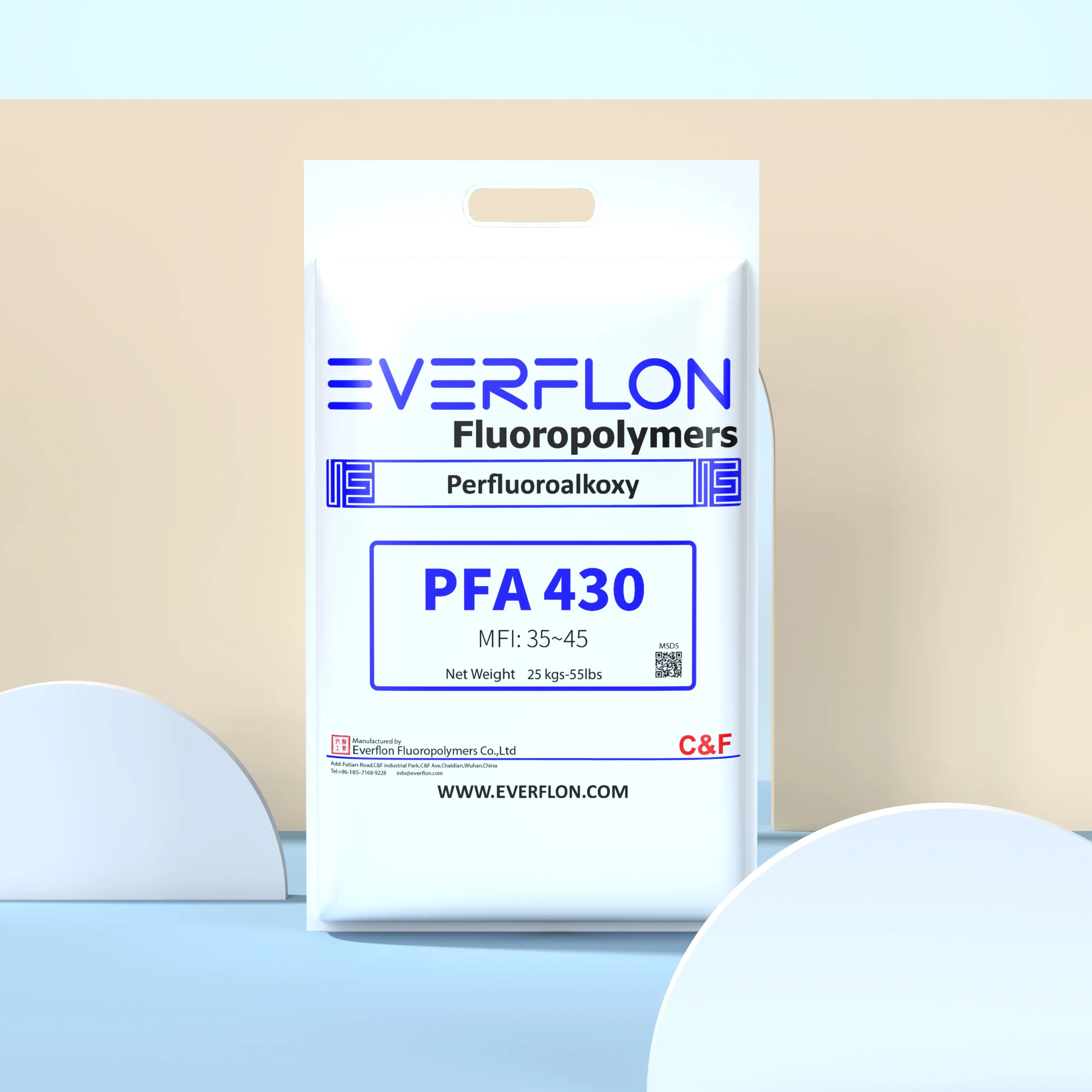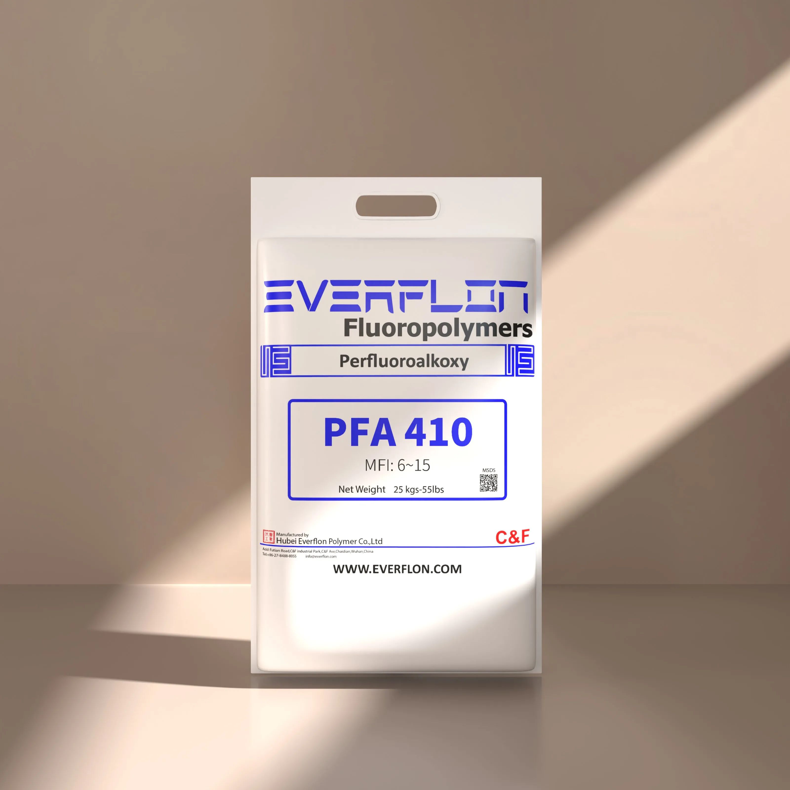 Everflon™ PFAはペレットで供給され、一体化したポリエチレンライナー付きの25kgマルチレイヤーバッグに入っています。